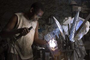 Nascido em Salvador, na Bahia, José Adário (1947) deu início à sua trajetória como ferreiro quando tinha apenas 11 anos de idade. Guiado pelo mestre e mentor Maximiano Prates, Adário aprimorou a sua prática como ferreiro de santo na oficina de Prates situada na histórica Ladeira da Conceição da Praia, seu local de trabalho até hoje.