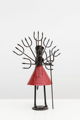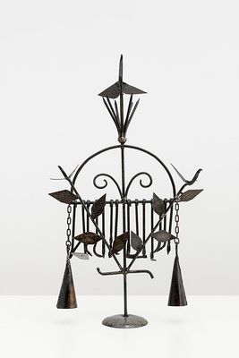 José Adário dos Santos (1947) nasceu no bairro de Caixa d’Água, Salvador, Bahia. Aos 11 anos de idade, iniciou-se no ofício de ferreiro de santo com o seu mestre e mentor Maximiano Prates. Desde então, fabrica portões, agogôs e ferramentas de santo: instrumentos de percussão e esculturas de ferro que operam uma espécie de mediação entre os homens e os deuses no candomblé.